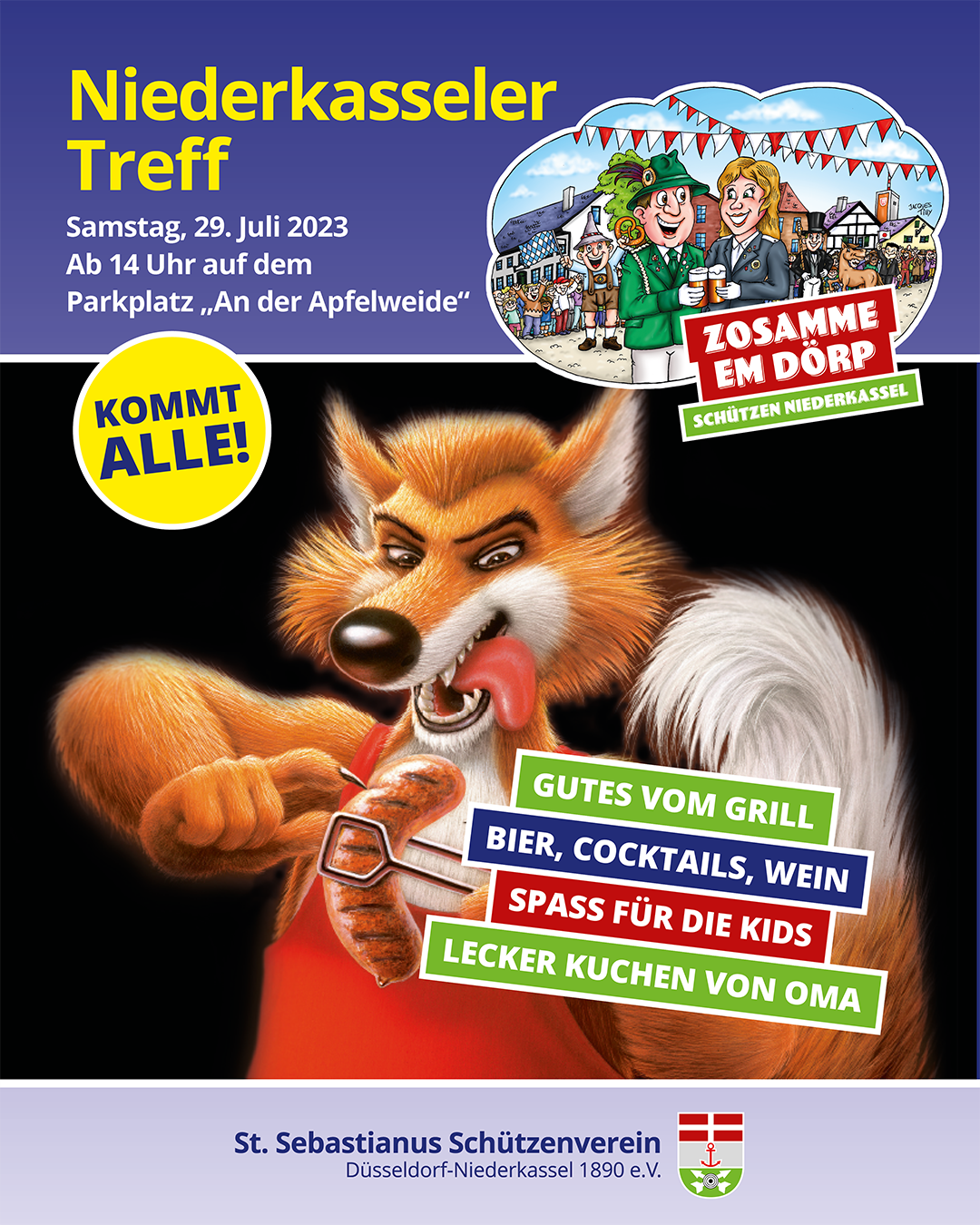 Wir freuen uns mit Euch “Zosamme em Dörp” den Niederkasseler Treff 2023 zu feiern!!!